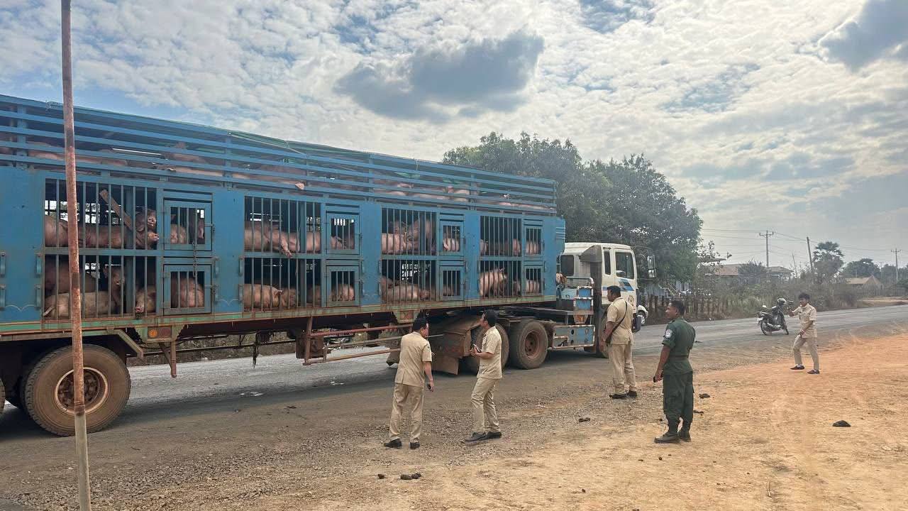 នាថ្ងៃទី៤ ខែកុម្ភៈ ឆ្នាំ២០២៦ ក្រុមអន្តរាគមន៍បង្ក្រាបបទល្មើសចលនាសត្វ និងផលិតផលសត្វនៃអគ្គនាយកដ្ឋានសុខភាពសត្វ និងផលិតកម្មសត្វ សហការជាមួយមន្ទីរកសិកម្ម រុក្ខាប្រមាញ់ និងនេសាទខេត្តព្រះវិហារ និងអធិការដ្ឋានស្រុករវៀង បានចុះប្រតិបត្តិការត្រួតពិនិត្យជាក់ស្ដែងលើការដឹកជញ្ជូនសត្វ និងផលិតផលសត្វ នៅលើផ្លូវលេខ៩៥ ត្រង់ចំណុចភូមិថ្នល់កែង ឃុំរុងរឿង ស្រុករវៀង ខេត្តព្រះវិហារ ដោយធ្វើការឃាត់រថយន្ត ១គ្រឿង ម៉ាក HYUNDIA ដឹកជ្រូករស់ចំនួន ១៦០ក្បាល នាំចេញពីប្រទេសឡាវ មកកាន់ព្រះរាជាណាចក្រកម្ពុជា តាមច្រកកំពង់ស្រឡៅ ខេត្តព្រះវិហារ ឆ្ពោះទៅលក់ចែកចាយបន្តនៅតាមបណ្ដារាជធានីខេត្ត។
