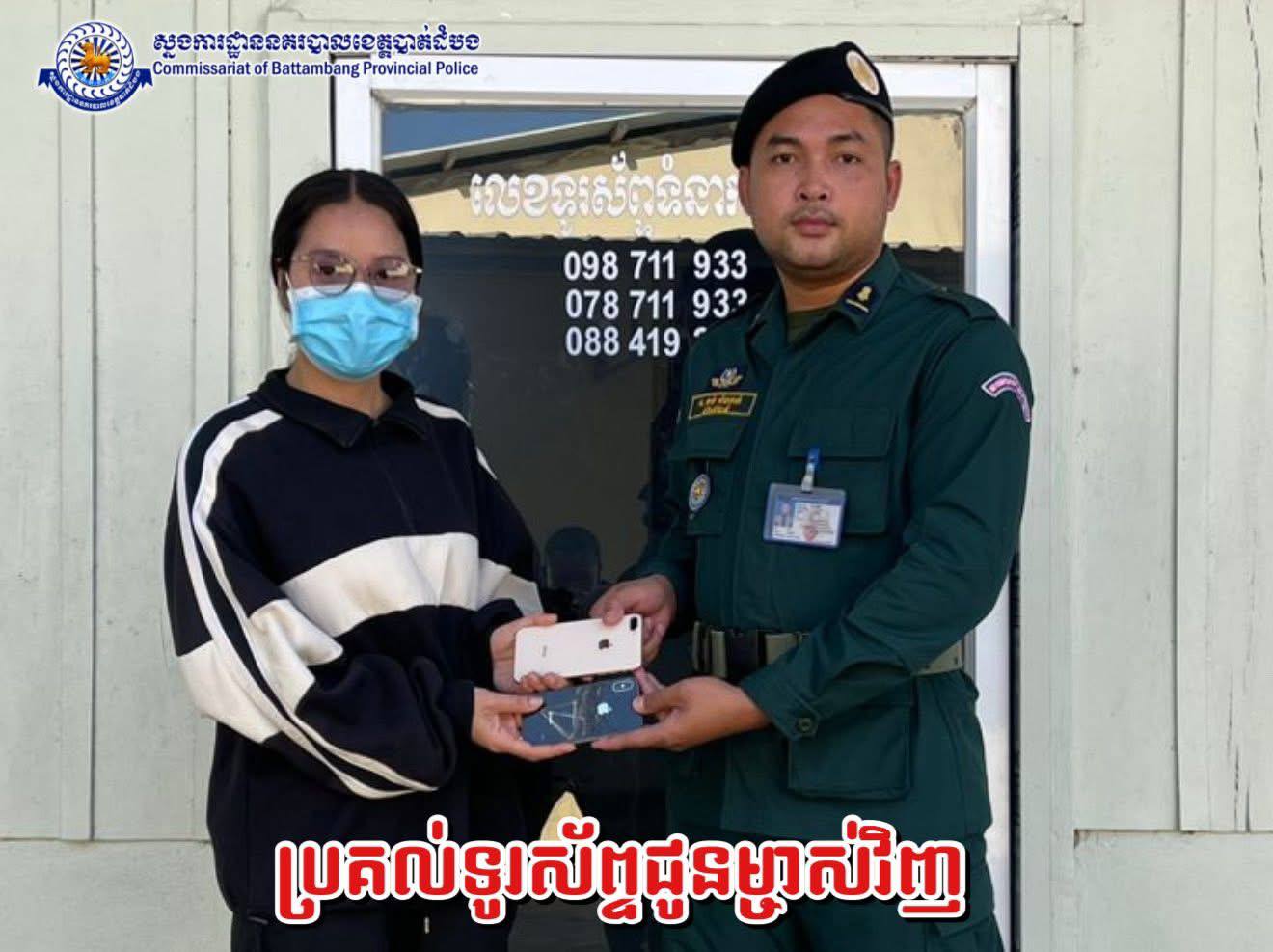 ពេលនេះជនសង័្សយត្រូវបានរៀបចំបញ្ជូនមកផែនជំនាញដេីម្បីអនុវត្តបន្តតាមផ្លូវច្បាប់រីឯទូរស័ព្ទប្រគល់ជូនម្ចាស់វិញ៕(រូបភាពនគរបាលស្រុកសង្កែ)