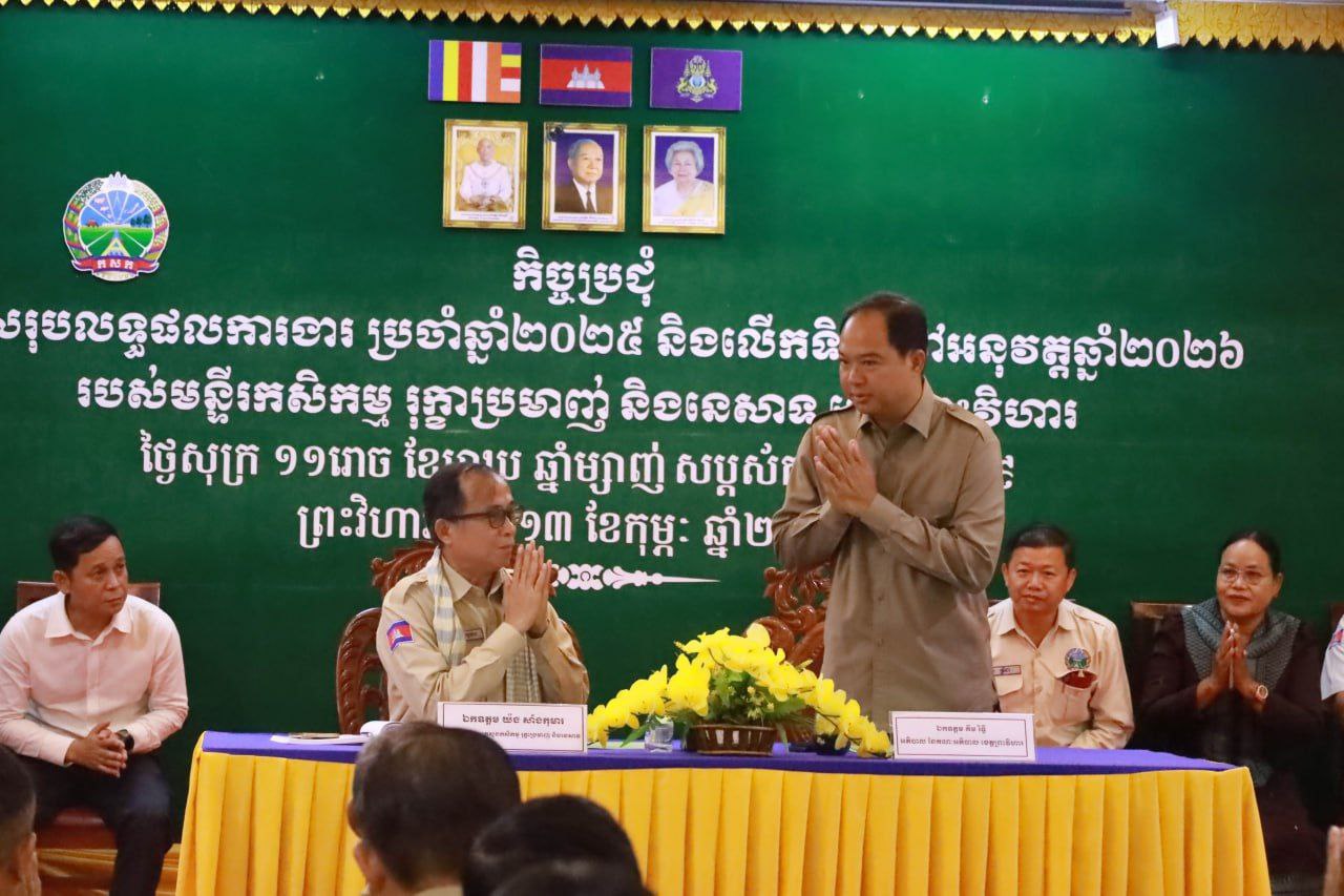 មន្ទីរកសិកម្ម រុក្ខាប្រមាញ់ និងនេសាទខេត្តព្រះវិហារ បានរៀបចំកិច្ចប្រជុំបូកសរុបលទ្ធផលការងារប្រចាំឆ្នាំ២០២៥ និងលើកទិសដៅការងារសម្រាប់ឆ្នាំ២០២៦ ក្រោមអធិបតីភាព ឯកឧត្តម គីម រិទ្ធី អភិបាល នៃគណៈអភិបាលខេត្ត ឯកឧត្តម យ៉ង សាំងកុមារ រដ្ឋលេខាធិការក្រសួងកសិកម្ម ព្រមទាំងមានការចូលរួមពីថ្នាក់ដឹកនាំ មន្ដ្រីរាជការ នៃមន្ទីរកសិកម្មខេត្ត និងមន្ដ្រីកសិកម្មឃុំជាច្រើនរូបទៀត។