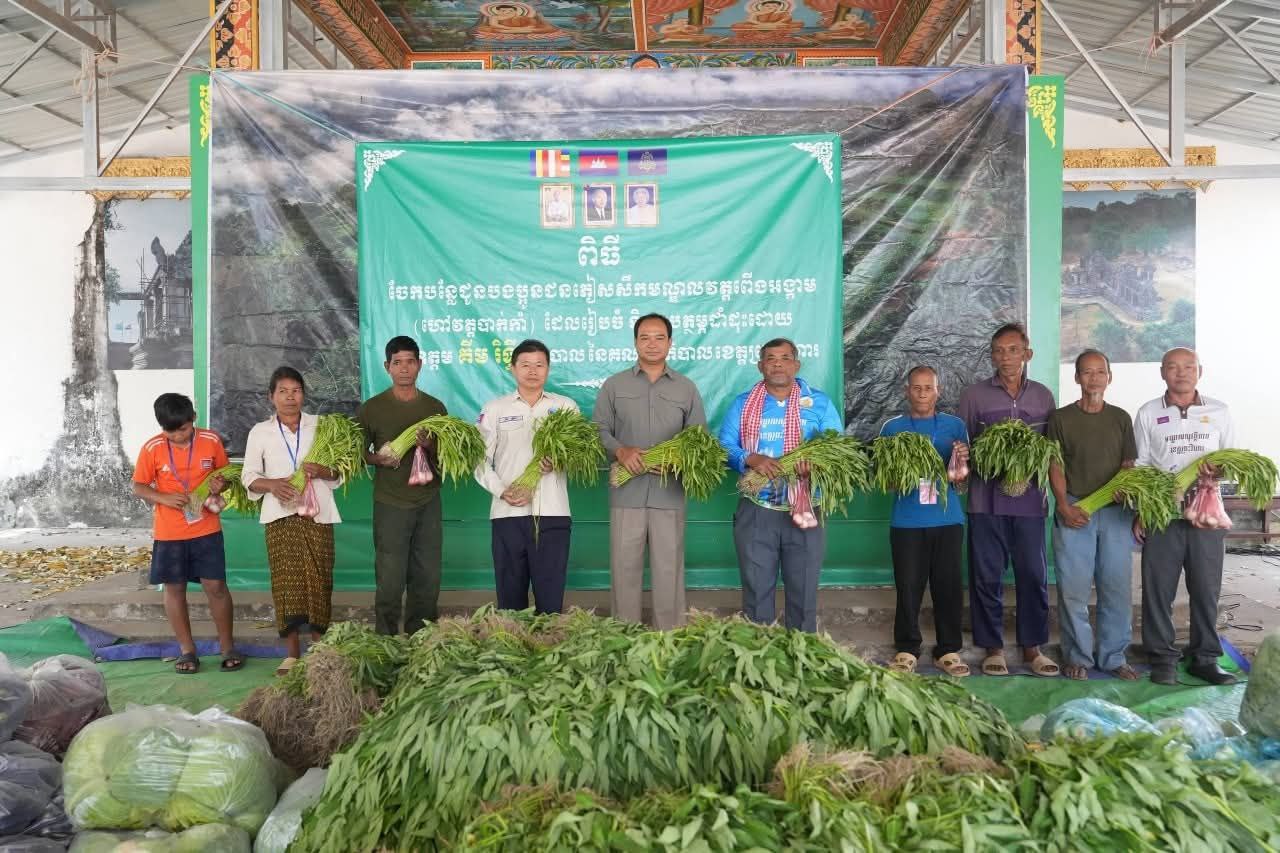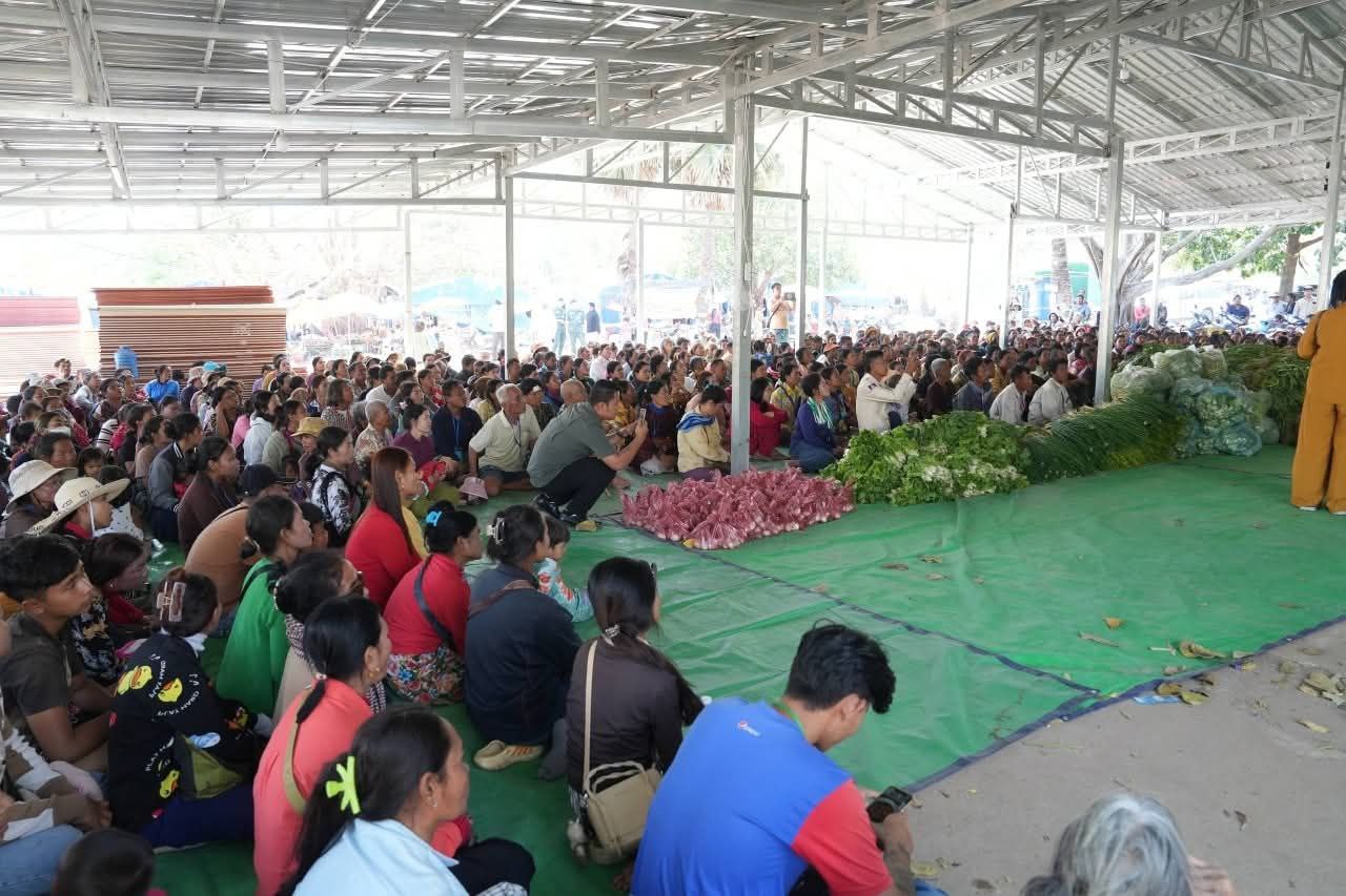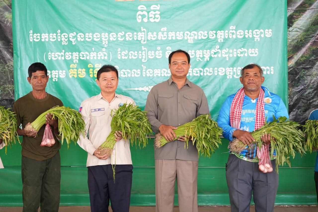 ពិធីចែកបន្លែគ្រប់មុខ និងពងទា ជូនដល់បងប្អូនប្រជាពលរដ្ឋភៀសសឹក ដែលកំពុងស្នាក់នៅ #មណ្ឌលវត្តពើងអង្កាមហៅវត្តបាក់កាំ ដែលរៀបចំ និងឧបត្ថម្ភដាំដុះដោយ ឯកឧត្តម គីម រិទ្ធី អភិបាលខេត្តព្រះវិហារ។