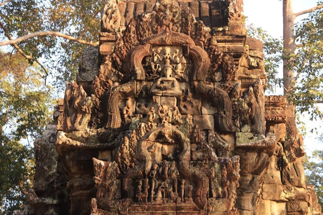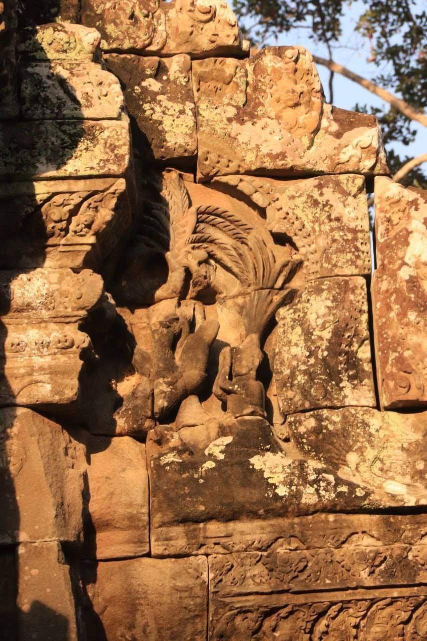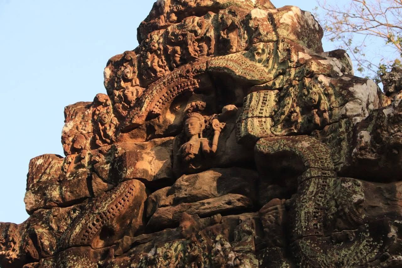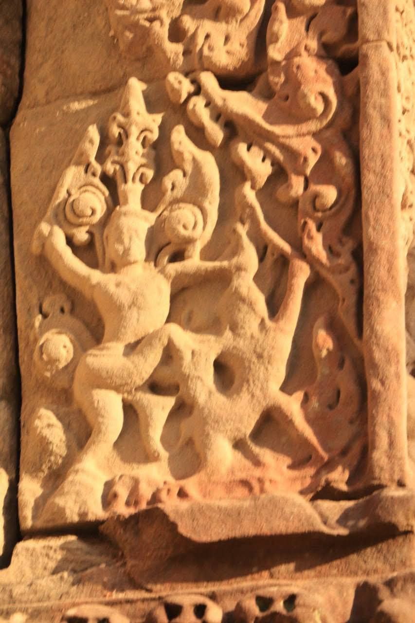 តួកណ្តាលមានលក្ខណៈពិសេស ដោយមានយ៉៤ ដែលខាងកើតបើកជាច្រកចូលសំខាន់ រីឯយ៉៣ទៀតបិទដោយទ្វារបញ្ឆោត។ នៅលើទ្វារបញ្ឆោតនៃយ៉ទាំង៣នេះ មានចម្លាក់ល្អវិចិត្រ និងអមដោយចម្លាក់ទេវតាជាច្រើនដូចនឹងប្រាសាទអង្គរវត្តដែរ។ ផ្តែរលើខ្លោងទ្វារខាងកើតមានចម្លាក់ជាពិសេសព្រះនារាយណ៍គង់លើជំនិះគ្រុឌ។ នៅលើហោជាងខាងត្បូងនៃមណ្ឌប មានចម្លាក់រឿងព្រះឥសូរគង់ធ្វើតាបសនៅភ្នំមួយ ដែលត្រូវក្រុងរាពណ៍អង្រួនរំខាន តែព្រះអង្គចុចចុងម្រាមជើងចុះដីសង្កត់ក្រុងរាពណ៍មិនឱ្យរើខ្លួនរួច។ ក្រៅពីនេះ មានចម្លាក់រឿងរាមកេរ្តិ៍ជាច្រើនកន្លែងទៀត បង្ហាញនៅតាមផ្តែរនិងហោជាងផ្សេងទៀត៕