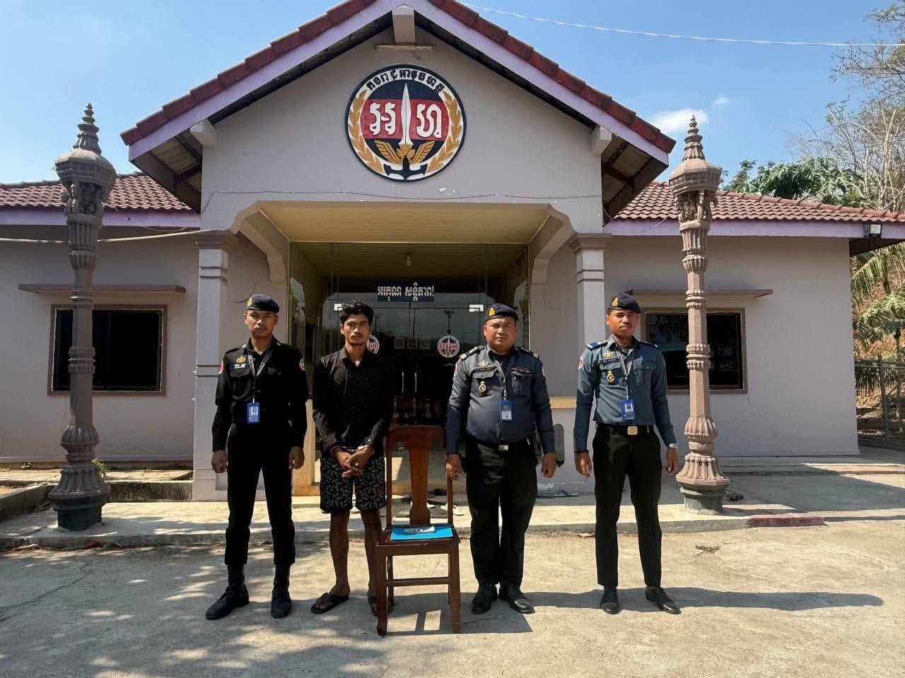 ភ្លាមៗនោះ កម្លាំងមូលដ្ឋានកងរាជអាវុធហត្ថស្រុកភ្នំស្រួច បានទៅដល់ទីតាំងកេីតហេតុ បានធ្វេីការឃាត់ខ្លួនជន សង្ស័យចំនួន ០១នាក់ ឈ្មោះ ប្រាក់ ម៉េងលី ភេទប្រុស អាយុ ២៦ឆ្នាំ មុខរបមិនពិតប្រាកដ ស្នាក់នៅភូមិឃុំខាងលើ មានទីលំនៅកំណើតភូមិជ័យសេនា ឃុំតាកែន ស្រុកឈូក ខេត្តកំពត។