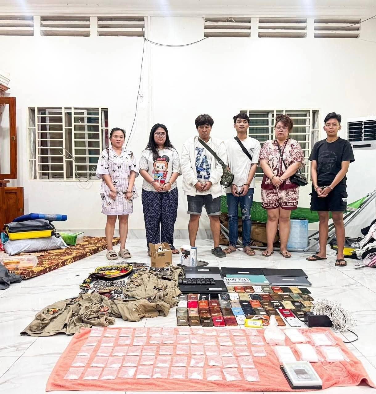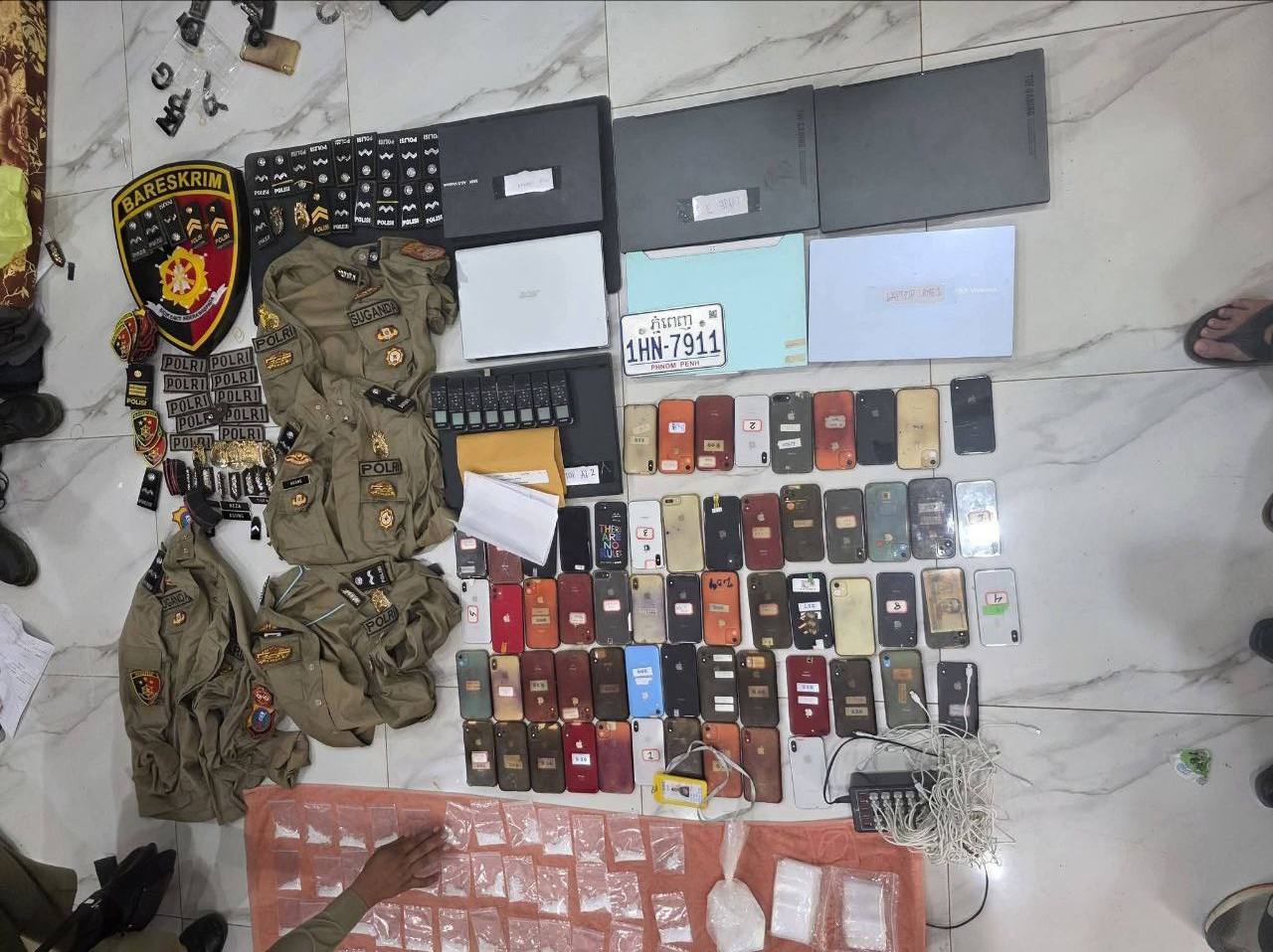 ក្នុងកិច្ចប្រតិបត្តិការនេះ សមត្ថកិច្ចបានឃាត់ខ្លួនជនសង្ស័យសរុបចំនួន ៧នាក់ ក្នុងនោះរួមមាន ជនជាតិឥណ្ឌូណេស៊ី ចំនួន៦នាក់ (ស្រី្ត ៤នាក់) និងជាតិខ្មែរចំនួន០១នាក់ ជាអ្នកបើកបរ និងយាមទីតាំង។ ក្រៅពីការឃាត់ខ្លួនមនុស្ស សមត្ថកិច្ចបានដកហូតសម្ភារៈប្រើប្រាស់សម្រាប់សកម្មភាពល្មើសច្បាប់មួយចំនួនធំ រួមមាន: ទូរសព្ទដៃ ៥៩គ្រឿង, កុំព្យូទ័រឡេបថប ៧គ្រឿង និងឧបករណ៍ថតសំឡេង ៨គ្រឿង, ឯកសណ្ឋាននគរបាលឥណ្ឌូណេស៊ី ចំនួន ៤អាវ ព្រមទាំងស័ក្តិ និងលោហ្គោមួយចំនួន, ម្សៅក្រាមសថ្លា សង្ស័យជាគ្រឿងញៀន ចំនួន ៥៩កញ្ចប់តូច និង ១កញ្ចប់ធំ។