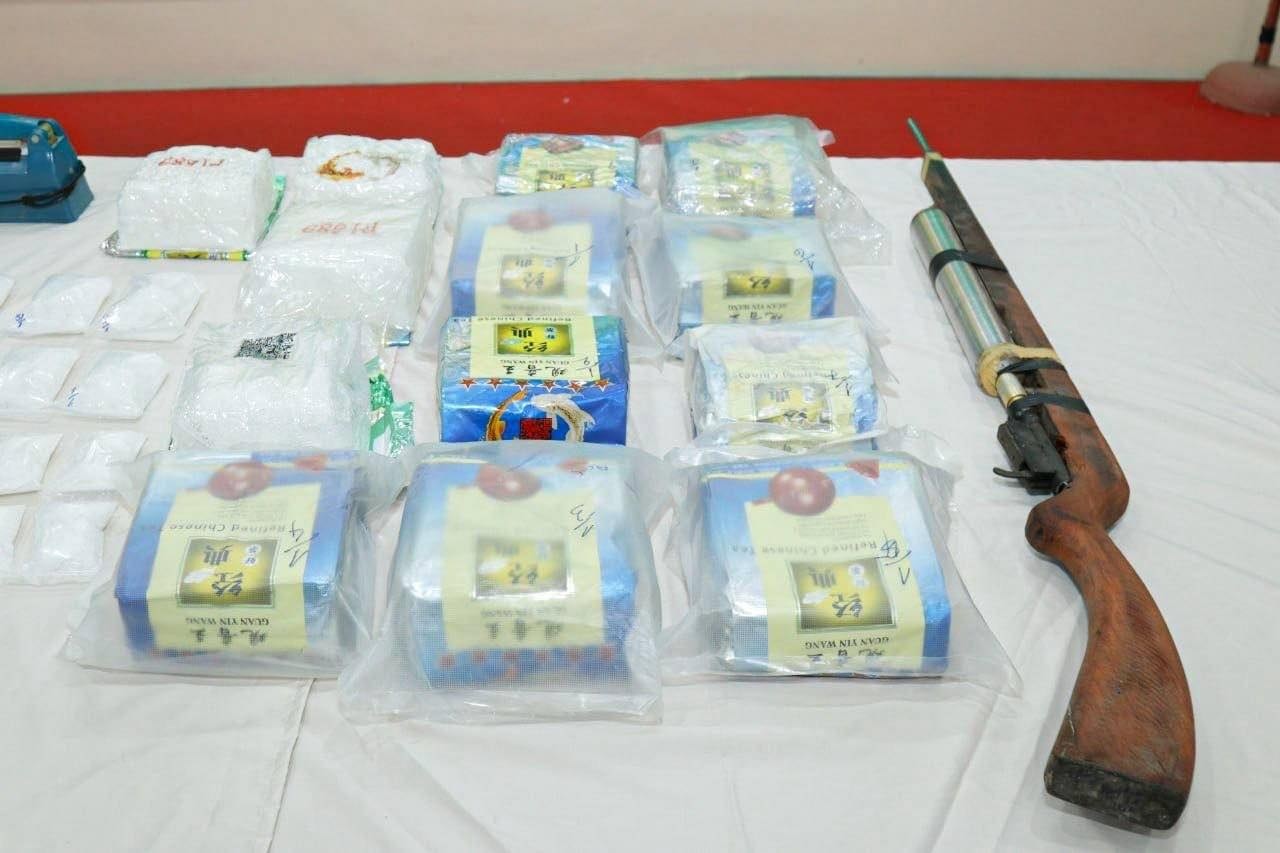 វត្ថុតាងដែលដកហូតបាន រួមមាន៖ សារធាតុញៀនសរុបជាង ១៥គីឡូក្រាម (រួមមាន ម្សៅក្រាមពណ៌សថ្លា (MET) ជិត ១៤.៤គីឡូក្រាម, ថ្នាំគ្រាប់ WY ជាង ៣,៥០០គ្រាប់ និងម្សៅពណ៌ទឹកក្រូច (Ketamine) ជាង ០១គីឡូក្រាម), រថយន្ត LEXUS NX200T ចំនួន ០១គ្រឿង, ម៉ូតូ ០៣គ្រឿង, ម៉ូតូកង់បី (PassApp) ០១គ្រឿង និងទូរស័ព្ទដៃ ០៩គ្រឿង, កាំភ្លើងកែច្នៃ ០១ដើម, ជញ្ជីងថ្លឹងថ្នាំញៀន ០៣គ្រឿង, ម៉ាស៊ីនអ៊ុតមាត់ថង់ ០១គ្រឿង ព្រមទាំងលិខិតឆ្លងដែន និងសម្ភារៈវេចខ្ចប់មួយចំនួនធំ។