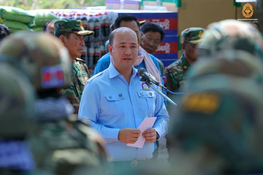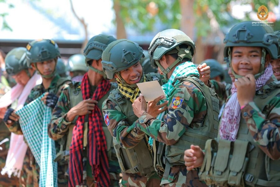 (ភ្នំពេញ)៖ ក្នុងស្មារតីសាមគ្គីភាព និងការដឹងគុណចំពោះវីរភាពដ៏ខ្ពង់ខ្ពស់របស់កងកម្លាំងប្រដាប់អាវុធ ក្នុងឱកាសពិធីបុណ្យចូលឆ្នាំថ្មីប្រពៃណីជាតិខ្មែរដែលនឹងឈានចូលមកដល់ខាងមុខនេះ ឯកឧត្តម ហ៊ុន ម៉ានី ឧបនាយករដ្ឋមន្ត្រី រដ្ឋមន្ត្រីក្រសួងមុខងារសាធារណៈ និងជាប្រធានសហភាពសហព័ន្ធយុវជនកម្ពុជា (ស.ស.យ.ក.) រួមជាមួយសហការី បាននាំយកនូវសេចក្តីនឹករលឹក និងពរជ័យសិរីសួស្តីផ្ញើជូនដល់បងប្អូនវីរកងកម្លាំងដែលកំពុងឈរជើងការពារបូរណភាពទឹកដីនៅតាមបន្ទាត់ព្រំដែន។