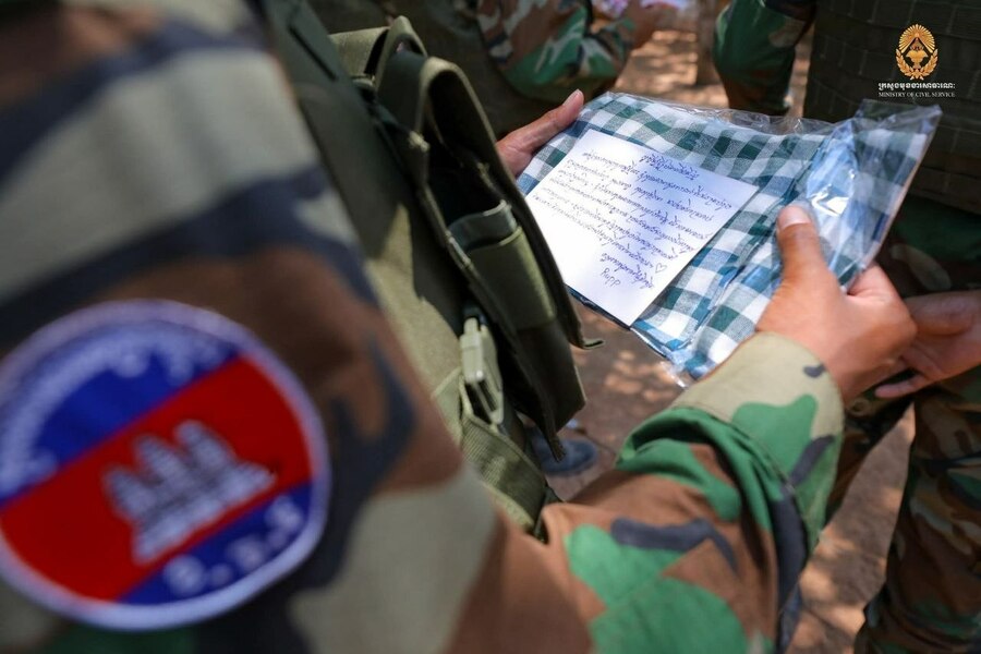 អ្វីដែលជាការលើកទឹកចិត្តយ៉ាងកក់ក្តៅបន្ថែមទៀតនោះ ឯកឧត្តម និងក្រុមការងារ ក៏បាននាំយកនូវវត្ថុអនុស្សាវរីយ៍ រួមជាមួយ “សារសរសេរដោយដៃ” រាប់ពាន់ច្បាប់ពីមហាជនគ្រប់ទិសទី ដែលបានសរសេររៀបរាប់ពីទឹកចិត្ត ក្តីស្រឡាញ់ និងការដឹងគុណយ៉ាងជ្រាលជ្រៅចំពោះវីរភាពរបស់បងប្អូនកងទ័ព។ សារនីមួយៗសុទ្ធតែបង្កប់នូវពាក្យពេចន៍សព្ទសាធុការពរជ័យ សិរីសួស្តី ក្នុងឱកាសឆ្នាំថ្មី ជូនដល់អ្នកការពារព្រំដែនឱ្យទទួលបាននូវសុខភាពល្អបរិបូរណ៍ និងជោគជ័យគ្រប់ភារកិច្ច។