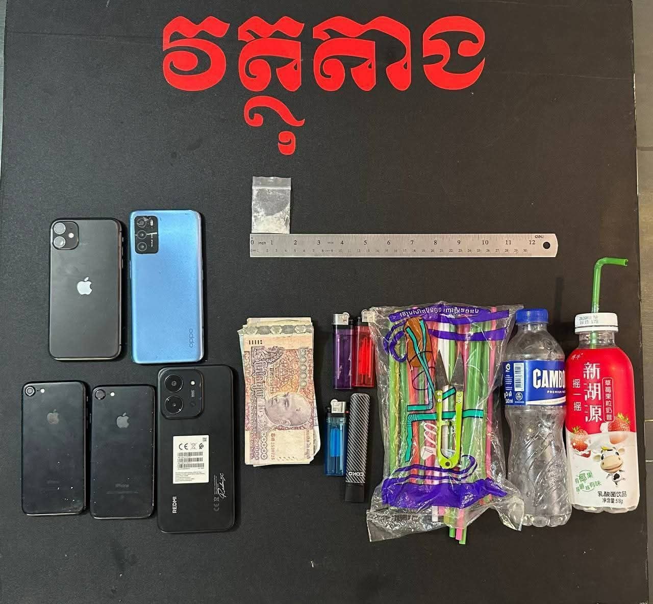 លោកអធិការបានបន្តថា មុនពេលឈានដល់ការឆ្មក់ចូលបន្ទប់ជួល កម្លាំងនគរបាលបានល្បាតតាមផ្លូវ និងឃាត់ខ្លួនឈ្មោះ សន ថា និងឈ្មោះ ឃី សុខណែត ដែលកំពុងជិះម៉ូតូឌុបគ្នា ដោយរឹបអូសបានថ្នាំញៀន ១កញ្ចប់។ ពួកគេសារភាពថាបានទិញថ្នាំនេះពីឈ្មោះ សឿន ដេវីត ក្នុងតម្លៃ ៣៧០០០រៀល ទើបសមត្ថកិច្ចបន្តតាមទៅវែកមុខដល់បន្ទប់ជួល និងឃាត់ខ្លួនបក្សពួក ៥នាក់ទៀត ដែលកំពុងប្រមូលផ្ដុំគ្នាប្រើប្រាស់គ្រឿងញៀន។