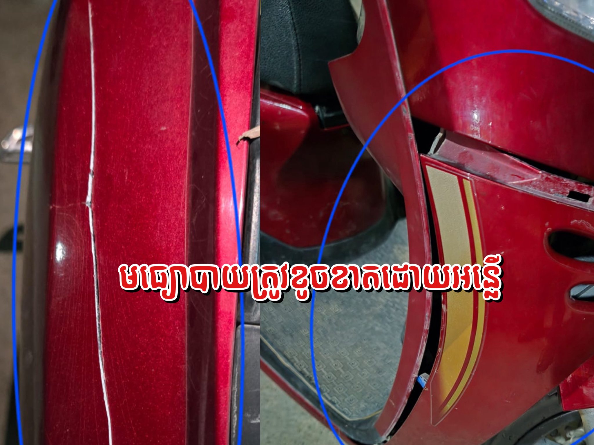១-ឈ្មោះ សេង ពិសិទ្ឋ ភេទប្រុស អាយុ ១៦ឆ្នាំ មានទីលំនៅភូមិទំពូង ឃុំតាម៉ឺន ស្រុកថ្មគោល (អ្នកវាយម៉ូតូ)