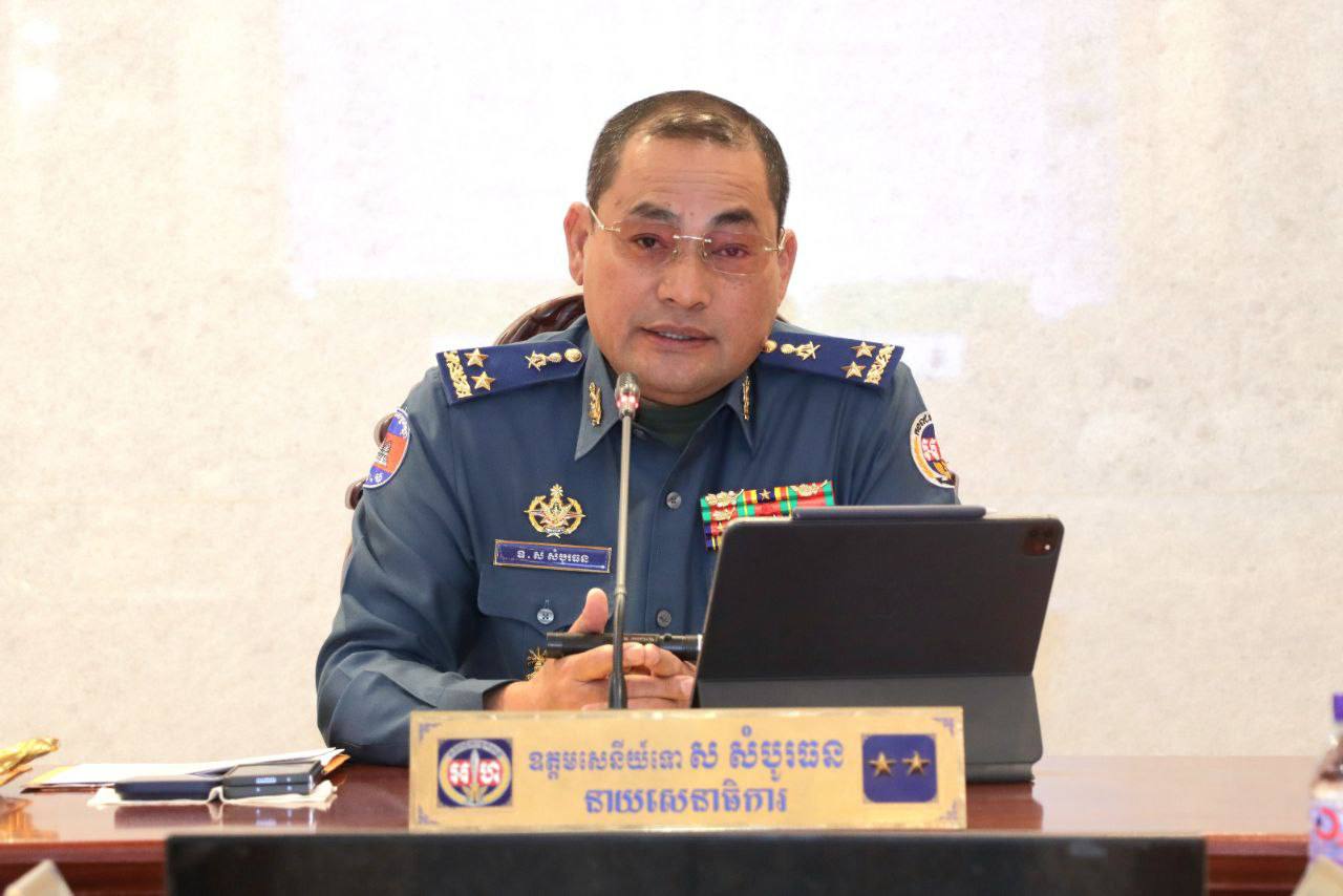 ភ្នំពេញ ៖ ដោយអនុវត្តបទបញ្ជាឯកឧត្តម នាយឧត្តមសេនីយ៍ សៅ សុខា អគ្គមេបញ្ជាការរង មេបញ្ជាការកងរាជអាវុធហត្ថលើផ្ទៃប្រទេស នៅសាលប្រជុំជាន់ផ្ទាល់ដី អគារសេនាធិការដ្ឋានកងរាជអាវុធហត្ថលើផ្ទៃប្រទេស នាព្រឹកថ្ងៃសុក្រ ទី២៣ ខែមករា ឆ្នាំ២០២៦ លោកឧត្តមសេនីយ៍ទោ ស សំបូរធន មេបញ្ជាការរង និងជានាយសេនាធិការកងរាជអាវុធហត្ថលើផ្ទៃប្រទេស បានអញ្ជើញដឹកនាំកិច្ចប្រជុំដើម្បីផ្សព្វផ្សាយផែនការ ការពារសន្តិសុខ រក្សាសណ្តាប់ធ្នាប់ និងសង្គ្រោះបន្ទាន់ ៖