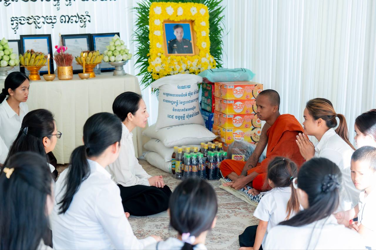 ក្នុងវេលានេះដែរ លោកជំទាវបណ្ឌិត បានពាំនាំប្រសាសន៍ចូលរួមរំលែកមរណទុក្ខដ៏ក្រៀមក្រំបំផុត រួមជាមួយប្រសាសន៍សួរសុខទុក្ខពី សម្តេចអគ្គមហាសេនាបតីតេជោ ហ៊ុន សែន សម្តេចកិត្តិព្រឹទ្ធបណ្ឌិត ប៊ុន រ៉ានី ហ៊ុនសែន រួមទាំង សម្តេចមហាបវរធិបតី ហ៊ុន ម៉ាណែត ជូនដល់ក្រុមគ្រួសារនៃសពផងដែរ។