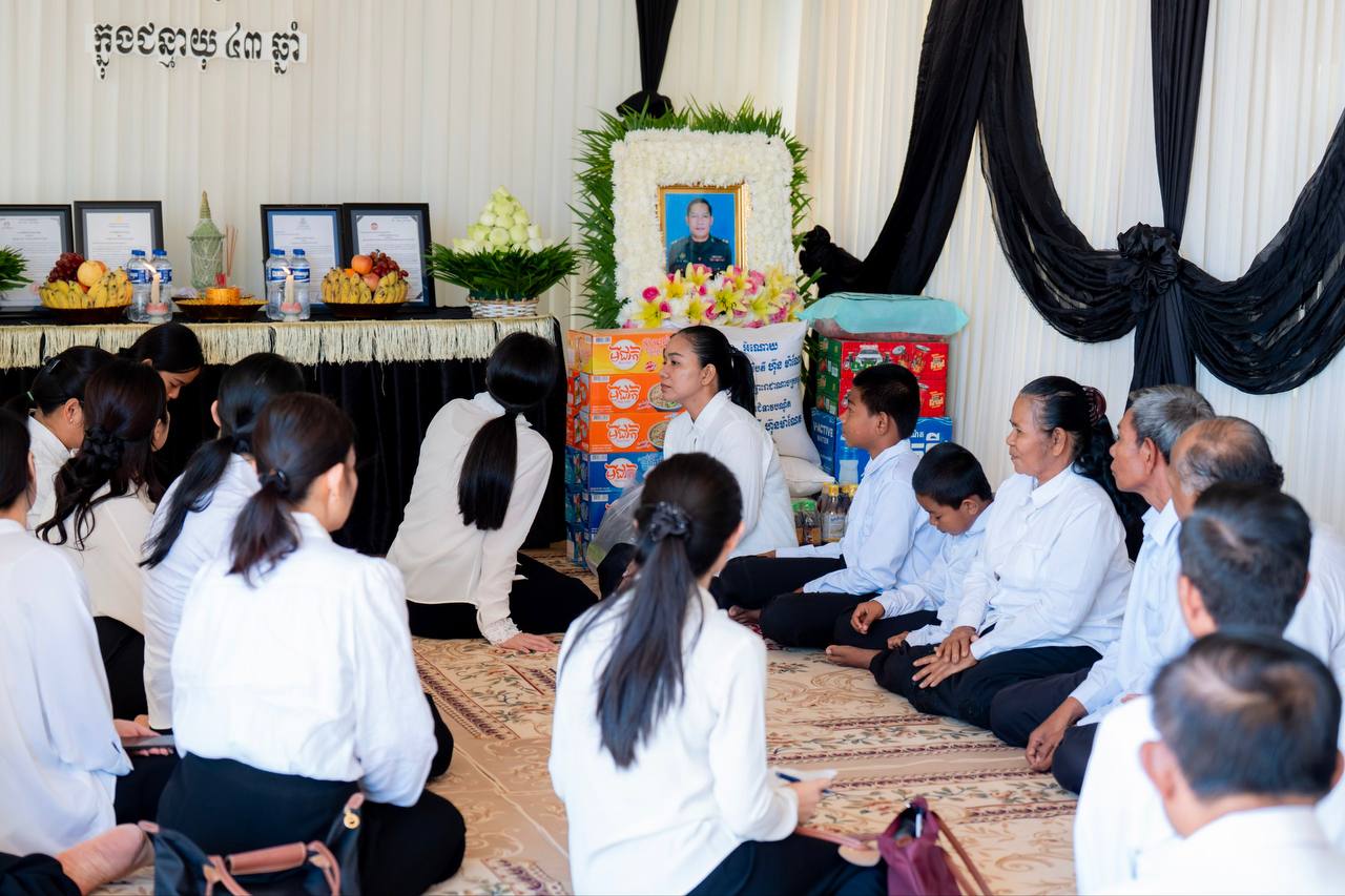 ដោយមានក្តីទុក្ខព្រួយជាពន់ពេក លោកជំទាវបណ្ឌិត បានអញ្ជើញមកគោរពវិញ្ញាណក្ខន្ធវីរយុទ្ធជនដែលបានពលីក្នុងសមរភូមិការពារបូរណភាពទឹកដី។