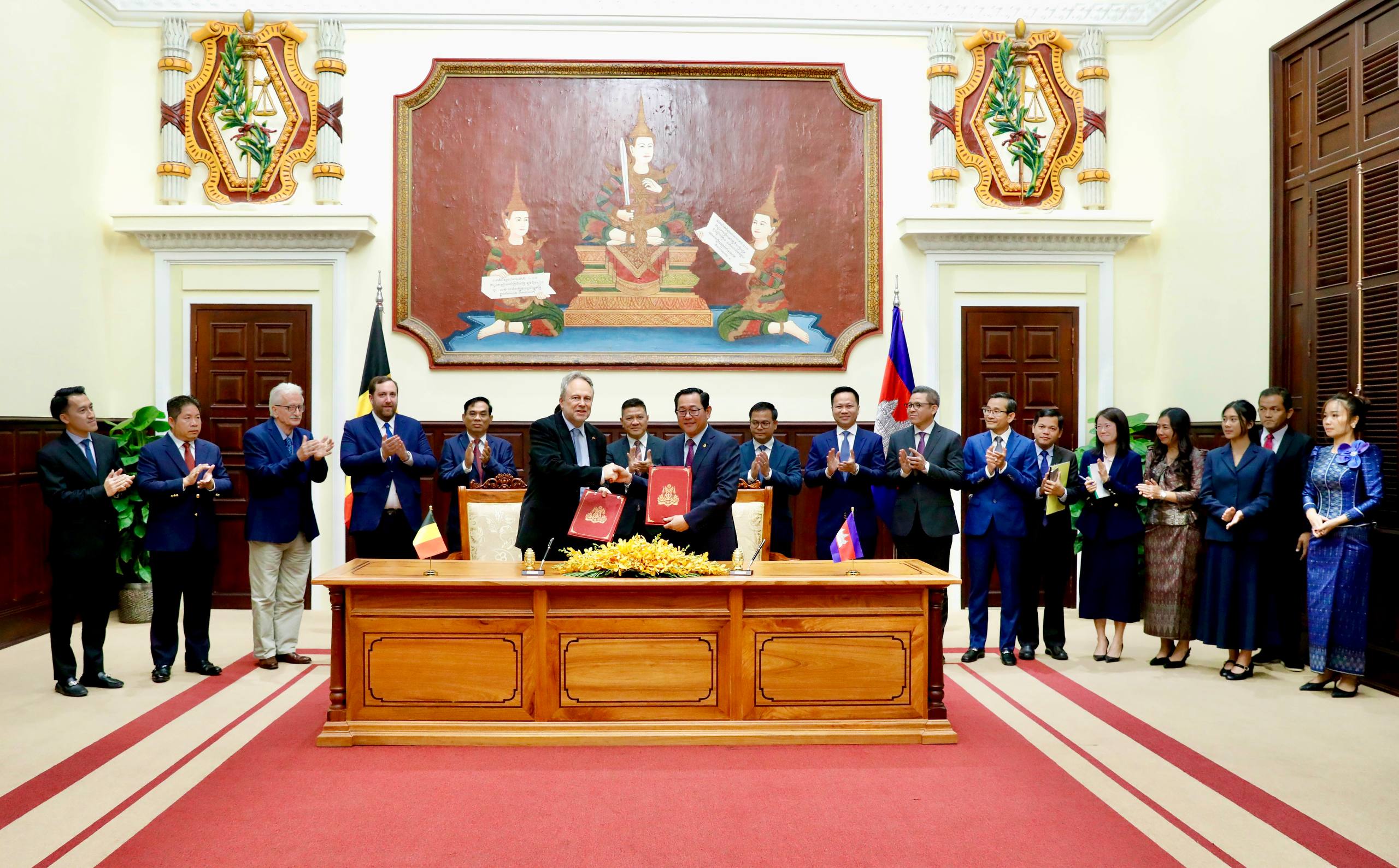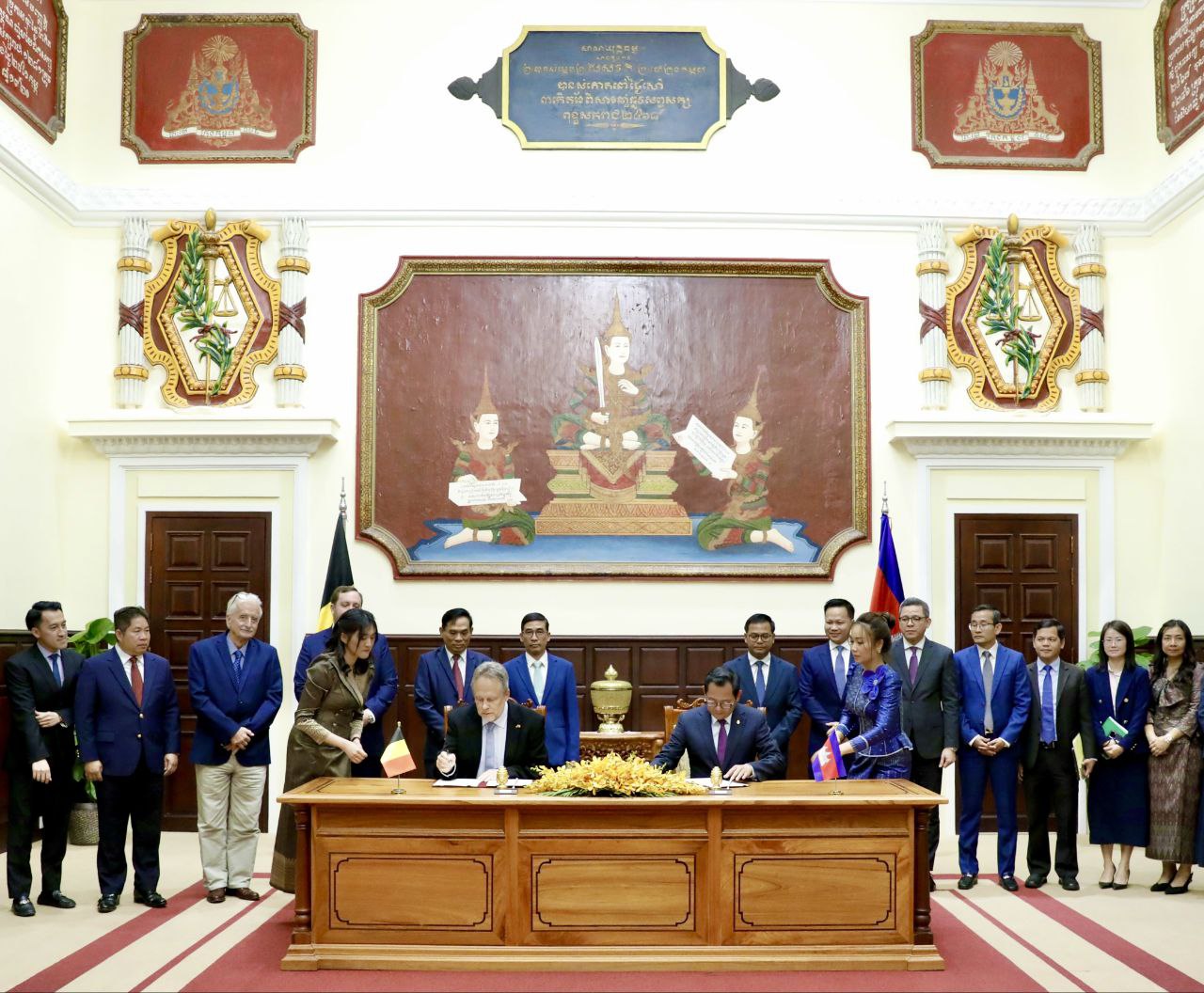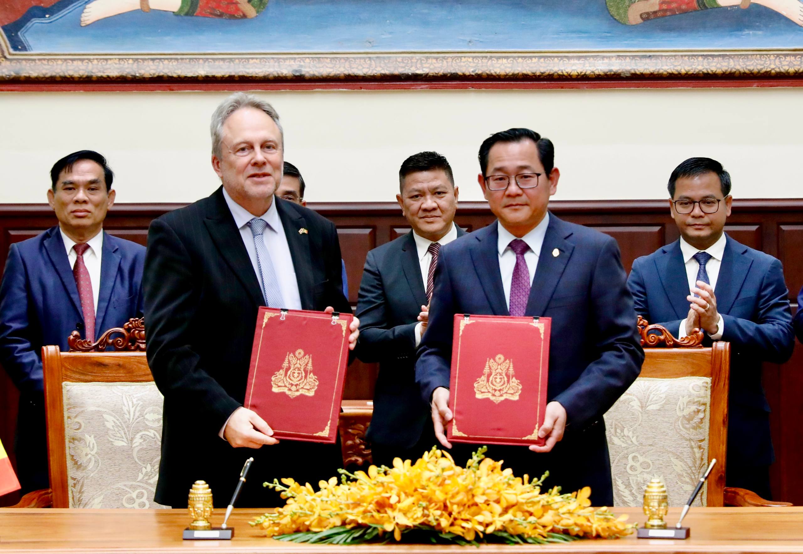 រាជធានីភ្នំពេញ៖ នារសៀលថ្ងៃសុក្រ ៥កើត ខែមាឃ ឆ្នាំម្សាញ់ សប្តស័ក ព.ស.២៥៦៩ ត្រូវនឹងថ្ងៃទី២៣ ខែមករា ឆ្នាំ២០២៦ នេះ, ឯកឧត្តម កើត រិទ្ធ ឧបនាយករដ្ឋមន្ត្រី រដ្ឋមន្ត្រីក្រសួងយុត្តិធម៌ និងឯកឧត្តម Michel Parys ឯកអគ្គរាជទូតវិសាមញ្ញនិងពេញសមត្ថភាពនៃព្រះរាជាណាចក្របែលហ្ស៊ិកប្រចាំព្រះរាជាណាចក្រកម្ពុជា ដែលមាននិវេសនដ្ឋាននៅទីក្រុងបាងកក បានអញ្ជើញចុះហត្ថលេខាលើសន្ធិសញ្ញារវាងព្រះរាជាណាចក្រកម្ពុជា និងព្រះរាជាណាចក្របែលហ្ស៊ិកស្តីពីការផ្ទេរទណ្ឌិត។ មុននឹងចាប់ផ្តើមពិធីចុះហត្ថលេខា ឯកឧត្តមឧបនាយករដ្ឋមន្ត្រី និងឯកឧត្តមឯកអគ្គរាជទូត បានជួបសម្តែងការគួរសម និងពិភាក្សាការងារអំពីគោលបំណង និងសារៈសំខាន់នៃការពង្រឹង និងពង្រីកកិច្ចសហប្រតិបត្តិការផ្នែកច្បាប់រវាងប្រទេសទាំងពីរឱ្យកាន់តែរឹងមាំ និងមានភាពជិតស្និទ្ធបន្ថែមទៀត។ សន្ធិសញ្ញាស្តីពីការផ្ទេរទណ្ឌិតនេះ គឺជាក្របខ័ណ្ឌច្បាប់ដ៏មានសារៈសំខាន់មួយ ក្នុងកិច្ចសហប្រតិបត្តិការផ្នែកច្បាប់ក្នុងវិស័យព្រហ្មទណ្ឌ ដែលអនុញ្ញាតឱ្យមានការផ្ទេរទណ្ឌិតរវាងប្រទេសទាំងពីរ ទៅអនុវត្តទោសនៅប្រទេសកំណើតរបស់ខ្លួន សំដៅជំរុញឱ្យមានការសម្រេចបាននូវយុត្តិធម៌ និងការធ្វើសមាហរណកម្មទណ្ឌិតចូលទៅក្នុងសង្គមរបស់ខ្លួនវិញ។