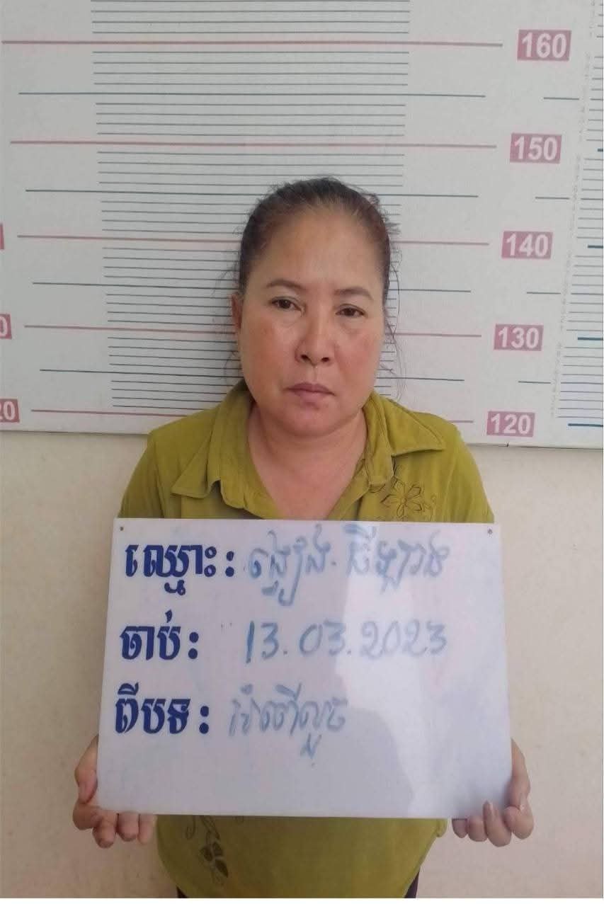 ១- ឈ្មោះ ង្វ្រៀន ស៊ីធូ ភេទ ស្រី អាយុ ៥៦ ឆ្នាំ ជនជាតិ វៀតណាម ស្នាក់នៅផ្ទះជួល ផ្លូវលំ ភូមិព្រែកសំរោង សង្កាត់តាខ្មៅ ក្រុងតាខ្មៅ ខេត្តកណ្តាល ។ (ជាមុខសញ្ញាចាស់ធ្លាប់ជាពន្ធនាគារច្រើនលើក)